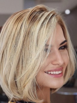 * Basis Größe: 10X7.5inch, kann von cut from 10x7.5" to 8.5x6.5" * Basis Typ: French lace with MONO base, schmal lace an der Vorderseite * Haare Länge: 6 inch * Haare Dichte: 130% Mittel * Haare Farbe: 613# Blond * Haare Direction: frei stil * Haare Textur: Body wellig..